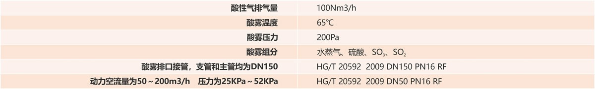 在硫酸的生產過程中,干燥循環槽和二吸循環槽會因為硫酸中溶解的飽和SO2在循環槽內被解析出來。通過向循環槽中添加水,可以調節硫酸的濃度。然而,由于水和酸的劇烈反應會釋放熱量,這導致加入循環槽的水部分蒸發成水蒸汽。因此,在生產過程中,酸循環槽液位的上部區域會產生由解析出的SO2,水蒸氣和酸霧組成的混合物。在硫酸的生產過程中,干燥循環槽和二吸循環槽會因為硫酸中溶解的飽和SO2在循環槽內被解析出來。通過向循環槽中添加水,可以調節硫酸的濃度。然而,由于水和酸的劇烈反應會釋放熱量,這導致加入循環槽的水部分蒸發成水蒸汽。因此,在生產過程中,酸循環槽液位的上部區域會產生由解析出的SO2、水蒸氣和酸霧組成的混合物。