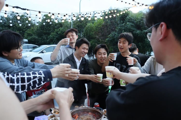 緊接著,香氣四溢的火鍋端上桌,大家圍坐在一起,舉杯共飲,歡聲笑語回蕩在空氣中。邊品嘗著美味的火鍋,邊欣賞著公司隱藏歌手們帶來的精彩表演。風格各異的歌聲,或深情動人,或激情澎湃,與天邊的夕陽相互映襯,構成了一幅溫馨美好的畫面。