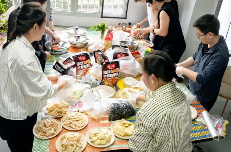 午后的陽光灑進公司,一場全員參與的 “慶典大作戰” 悄然展開。有人化身 “廚房特種兵”,洗菜切肉精心準備著美味佳肴;有人變身 “美學大師”,彩燈氣球在指尖勾勒出夢幻場景,讓會場充滿溫暖氣氛;還有技術達人穿梭在場地間,確保每一盞彩燈、音響話筒都完美運行。大家齊心協力,為這場慶典貢獻著自己的力量,沒有 “分工” 的界限,只有 “我們” 的默契。