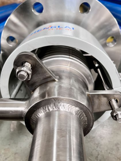 磺槍需在焚硫爐冷熱交替環(huán)境中長時(shí)間使用,為確保焊縫不出現(xiàn)失效泄漏,焊接質(zhì)量至關(guān)重要。為減少焊縫失效泄漏,我們在高效磺槍組對焊接過程中,嚴(yán)格按照《高效磺槍制造技術(shù)標(biāo)準(zhǔn)》進(jìn)行作業(yè)。每一道焊縫均充入高純氬氣,對槍身進(jìn)行置換,確保焊接過程中材料不被氧化,避免出現(xiàn)氣孔或缺陷。310S材料因其導(dǎo)熱速度快,在焊接過程中易產(chǎn)生較大的熱應(yīng)力變形。為有效降低焊接熱應(yīng)力引起的變形,我們在每道焊縫完成后,均會耐心等待其自然冷卻,再進(jìn)行下一道焊縫的焊接作業(yè)。