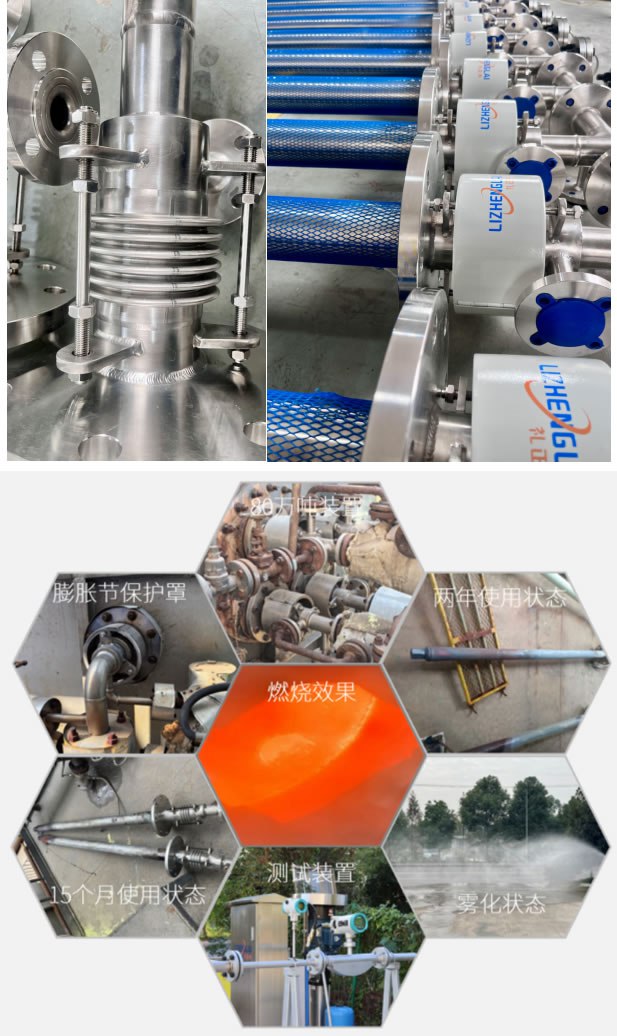 高效磺槍安裝在焚硫爐狹小空間上,每次裝置大修都要拆卸磺槍,由于高效磺槍膨脹節(jié)薄弱容易在拆卸過程中受到敲擊,因此我們設(shè)計(jì)了膨脹節(jié)防護(hù)罩和軸向固定桿。