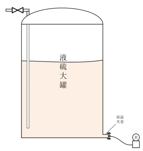 液硫大罐為防止因單一液位測量失真導致滿罐或打空,需采用兩種不同測量原理的液位計。通常選用雷達液位計和磁翻板液位計。然而,由于液硫大罐高度超過10米,磁翻板液位計安裝困難且易損壞,后期維修不便,因此低故障率和便于維護的壓力變送器成為測量液硫大罐液位的理想選擇。在安裝壓力變送器時,務必將壓力傳感器的位置設置在檢測膜片的水平下方。特別需要注意的是,液硫易凝固,這不僅影響測量,還可能損壞壓力變送器的膜片,因此需在引出管和法蘭連接處加裝保溫夾套。頂部空氣部分與大氣壓保持恒定,只需測量液硫大罐底部的壓力,并結合已知的液硫密度,即可通過公式計算出液位。此外,還需計算液硫大罐滿灌時的壓力,以選擇量程合適的壓力變送器。