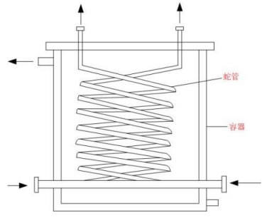 蛇管多以金屬管彎繞而成,沉浸在容器中兩種流體分別在管內(nèi)外流動。
