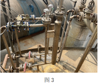 1.低溫余熱回收系統(tǒng)的硫酸濃度調(diào)整是通過加水實(shí)現(xiàn)的,加水量設(shè)計(jì)是采用自動(dòng)控制,其過程變量也是一級(jí)循環(huán)上塔硫酸濃度。因此一級(jí)循環(huán)上塔酸濃在低溫余熱回收系統(tǒng)中既是保護(hù)裝置的安全儀表,也是測(cè)量?jī)x表。當(dāng)一級(jí)循環(huán)酸濃無法準(zhǔn)確測(cè)量時(shí),由于生產(chǎn)負(fù)荷的變化,難免會(huì)造成一級(jí)酸濃低于φ(H2SO4)99.00 %,加速腐蝕,造成余熱回收塔壁、蒸發(fā)器、換熱器、泵和一級(jí)分酸器腐蝕嚴(yán)重。