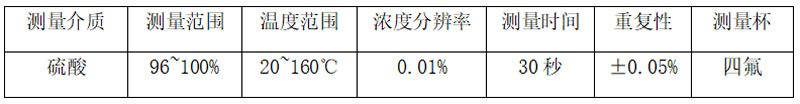 2、從取樣瓶中量取30mL硫酸樣品,倒入測量杯中,并蓋好測量杯蓋子。隨后,將測量杯放入便攜式分析儀的測量孔內(nèi),并插入溫度計信號線。分析儀顯示屏將顯示溫度,等待約10秒,待酸濃度穩(wěn)定后讀取數(shù)值。